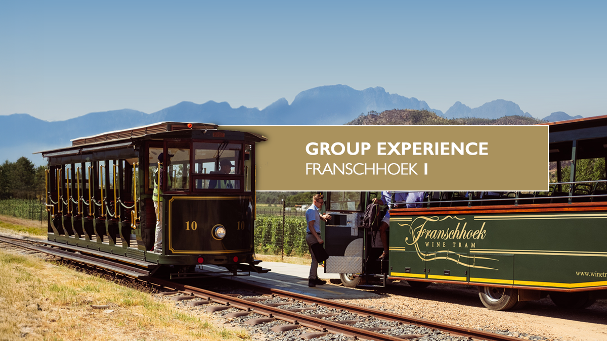 Groups will visit up to 3 pre-selected wine estates in the Franschhoek Valley over the course of the day by double-decker tram (shared with other passengers) and open-air tram bus.